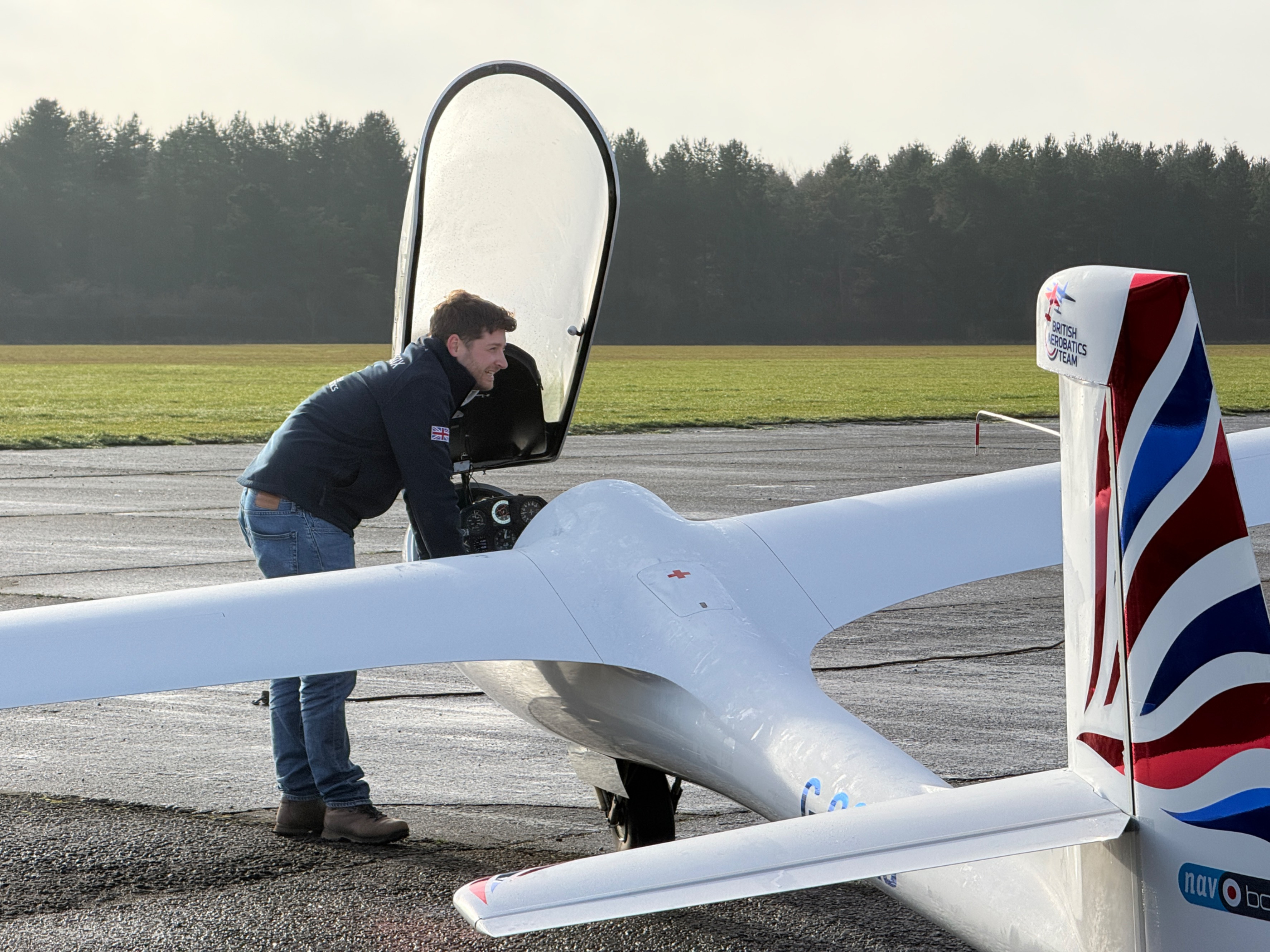 Saturday began with unforecast fog that seemed determined to linger indefinitely. Many club members remarked that skies had been clear on their drive in, only for the fog to thicken as they approached the airfield — it seemed Saltby was the only place affected that day. Eventually, by around 12:30, conditions improved enough to get flying. With high tows to 5,000 ft behind GY, expertly provided by Keith Ford and Dave Unwin, Neil, Alex and Elliot were able to get to work. The flying focused on a demanding mix of precision rolling, sustained negative-G manoeuvres and spinning. The aim was not volume, but familiarity — building comfort with challenging figures to inform the design of our Known sequences for the 2026 season.